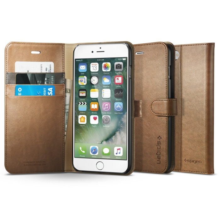 Кожаный чехол-книжка Spigen для iPhone 7 Plus / 8 Plus - Wallet S - Коричневый - 043CS20544