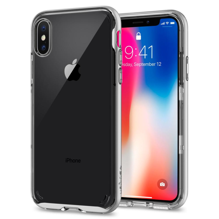 Прозрачный чехол Spigen для iPhone X / XS - Neo Hybrid Crystal - Серебристый - 057CS22174