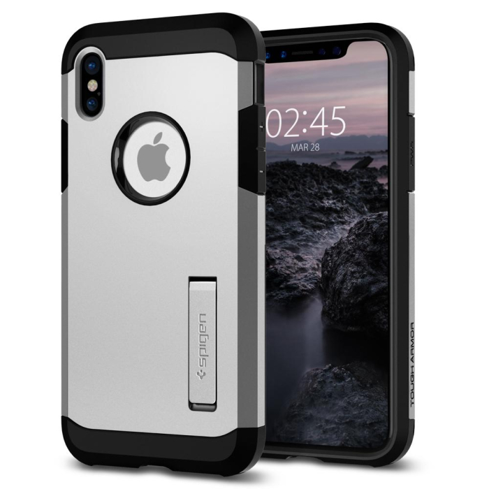 Ударопрочный чехол Spigen для iPhone X / XS - Tough Armor - Серебристый - 057CS22163