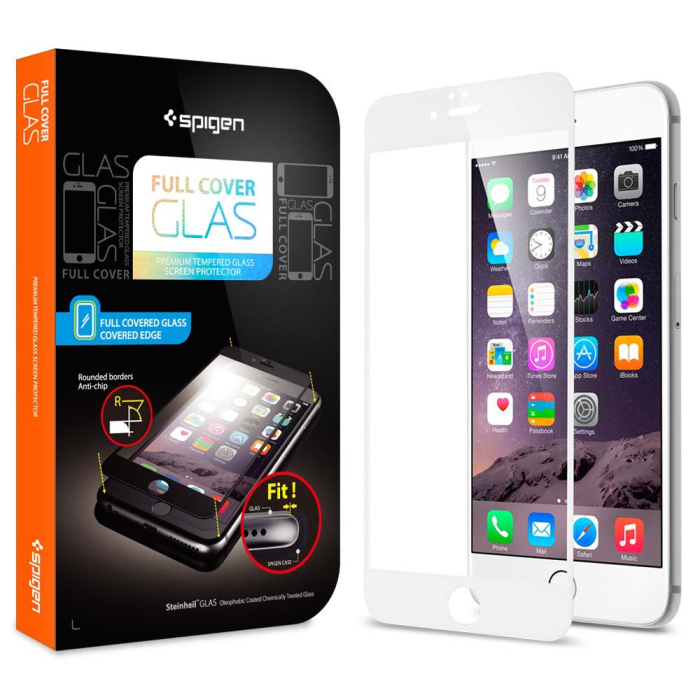 Защитное стекло Spigen для iPhone 6s Plus / 6 Plus - Full Cover Glass - Белое - SGP11379